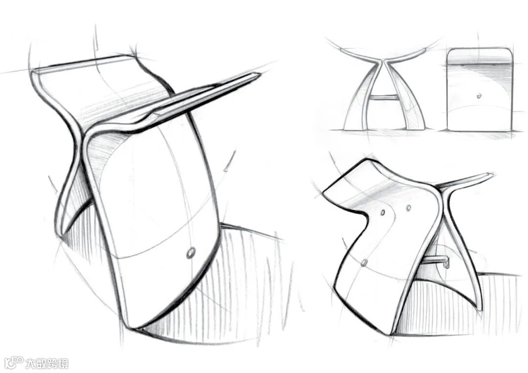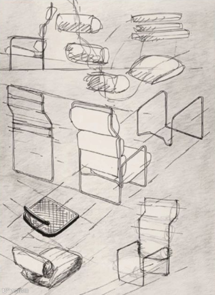 而家具设计师的手稿,几乎都是写实主义,因为他们聚焦于一个具体的物件,从力学原理出发,以严谨的结构与精确的角度打造舒适的使用体感,再辅以不同特性材质的助力,最终让可以跨世纪的经典作品诞生。