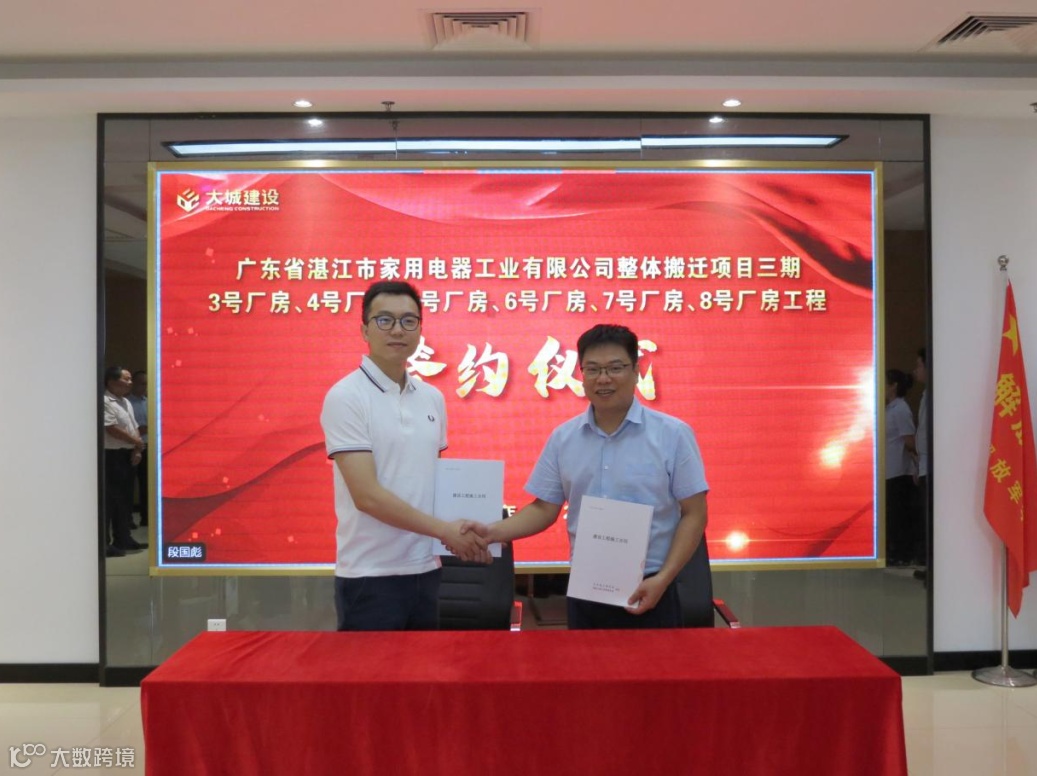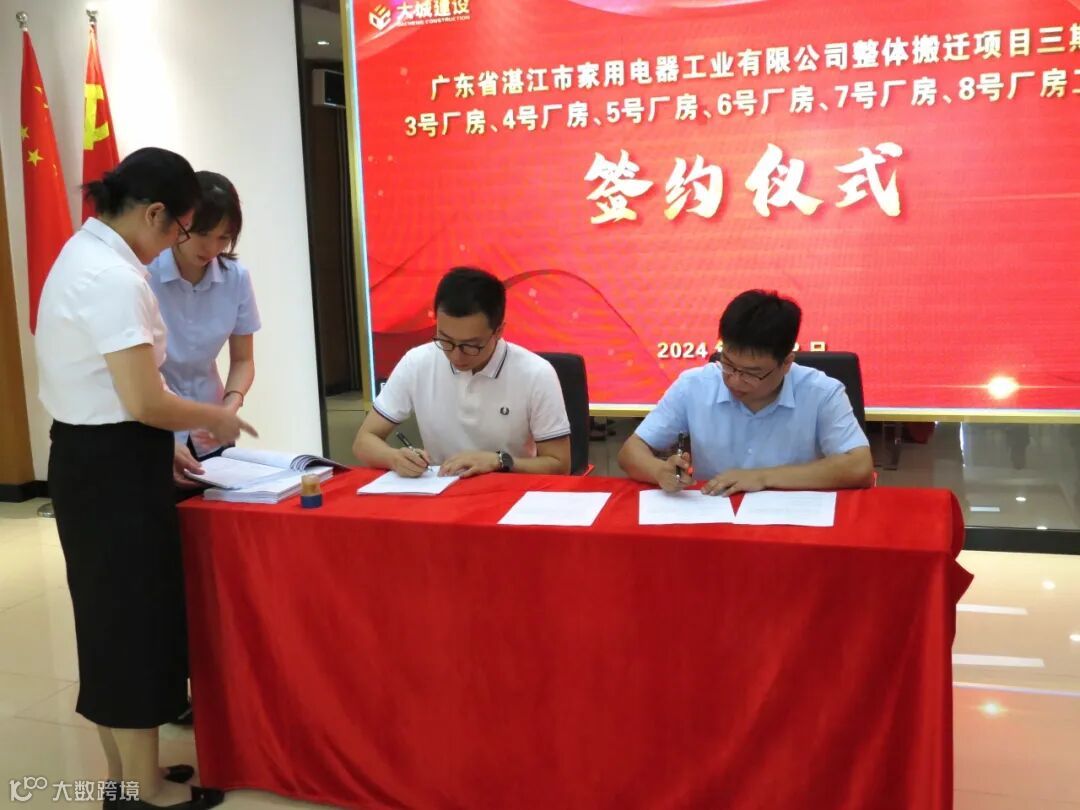2024年9月2日上午,我司与湛江市家用电器工业有限公司举行“广东省湛江市家用电器工业有限公司整体搬迁项目三期工程签约仪式”并召开座谈会。我司集团股东张海成、梁田生,集团董事长黄立军,红牌集团董事长钟志清,红牌集团及湛江家电公司总经理叶森等领导一行参加签约仪式。