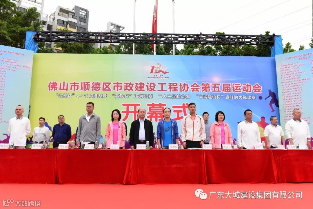 广东大城建设集团有限公司11月17日,顺德区市政建设工程协会第五届运动会开幕式在顺德梁开中学运动场举行,本届运动会共有拔河、篮球、足球、趣味跳大绳赛、二人三足以及“会长杯”4*100米接力赛。我司荣获趣味跳大绳第三名以及“会长杯”4*100米接力赛第二名,顺德区有关部门的领导及嘉宾参加了开幕典礼。