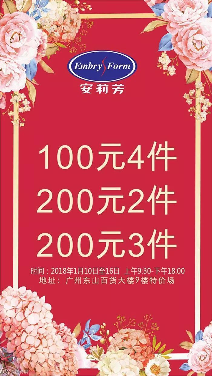 东山店9楼:【安莉芳集团】首次年前特惠大酬宾!内衣低至100元4件!