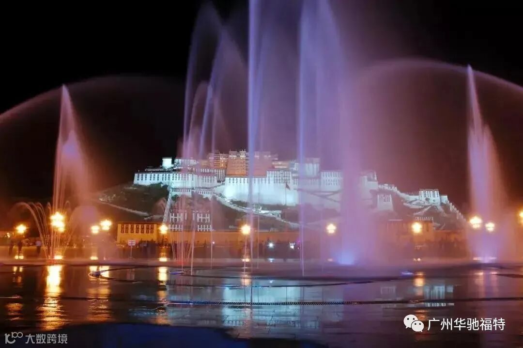 晚上最不能错过的就是到布达拉宫对面的广场上拍夜景、看喷泉,这些地方距离我们入住的拉萨饭店都非常近。