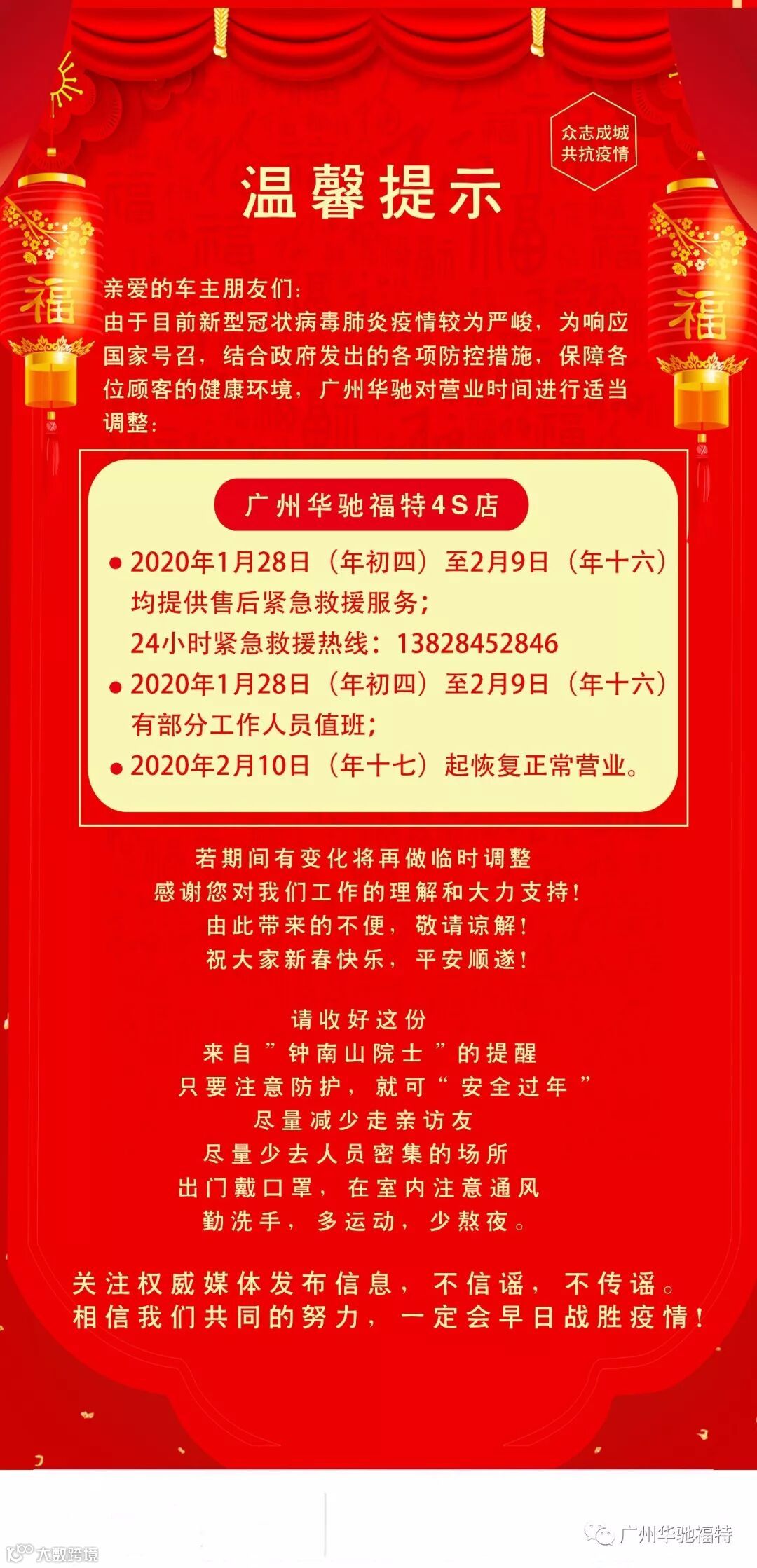 广州华驰福特祝大家一路平安!新年快乐!