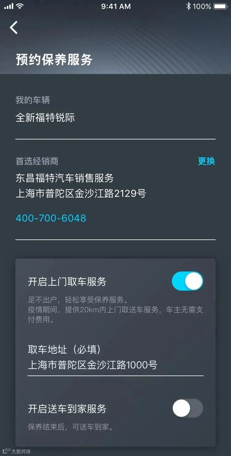 同时,福特派APP预约上门取送车服务从2020年4月5日起也将全面升级,长安福特和福特进口车车主可享受20公里(单程行驶里程)以内限时免费上门取送车服务23。
