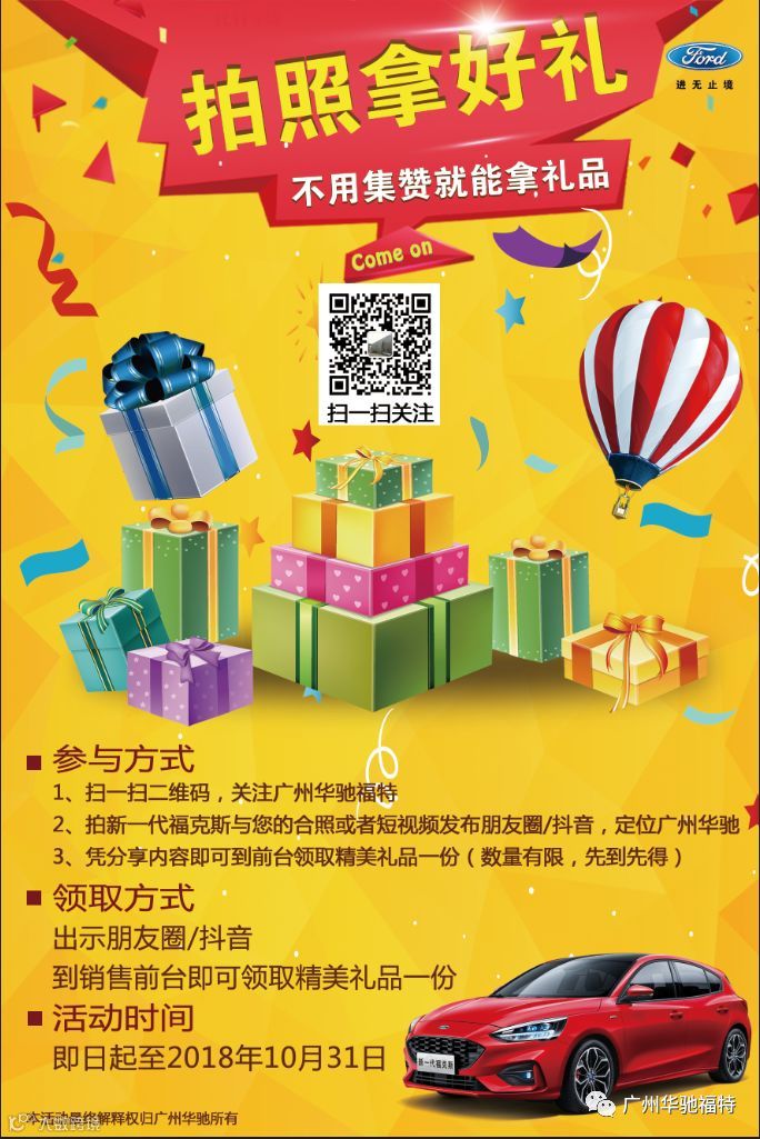 tips:关注广州华驰福特→送福利→到店抽奖→到销售前台领取礼品