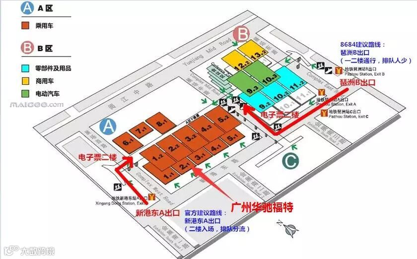 温馨提示:乘用车展馆位于琶洲会展中心A区,公交“国际会展中心站”和“地铁新港东站”为推荐目的站点。公交出行,低碳环保。