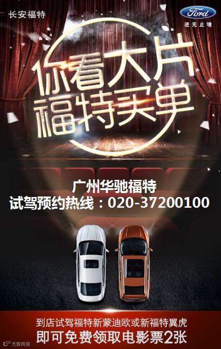 活动期间,到店试驾福特新翼虎和蒙迪欧即送双人电影票