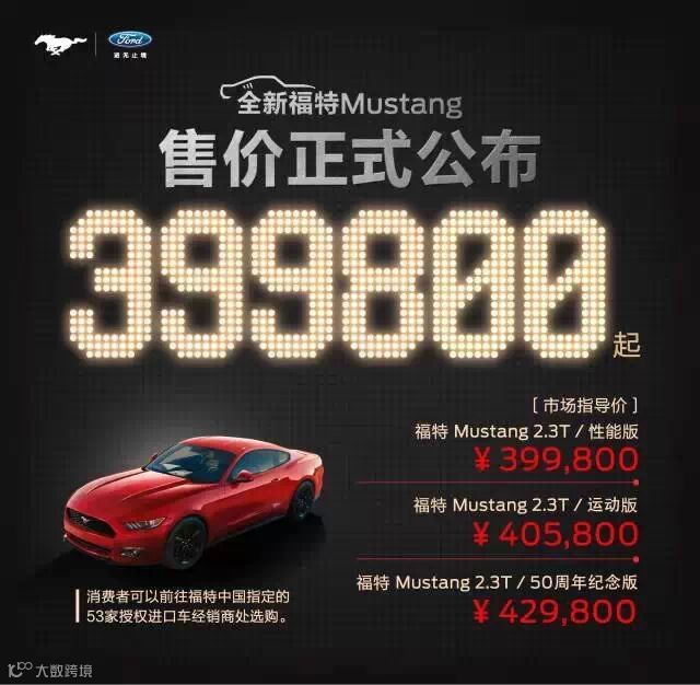 万众瞩目的全新福特Mustang的市场指导价格正式公布,传奇肌肉跑车野性登场!这也标志着福特Mustang这一流行文化符号般的传奇车型,首次正式进入中国市场。