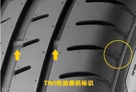 5、标记:据专业人士介绍,正规全新轮胎出厂后,轮胎外侧都会带有“TWI”或小三角等磨耗标识,而翻新后的劣质胎标志是作坊自己贴上的,所以用手抓抠标志,也可以辨别。