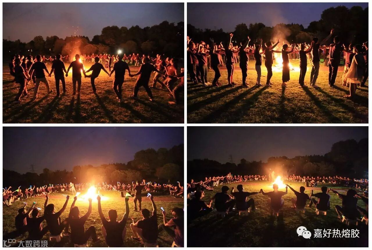 拓展活动结束后,是烧烤和“篝火晚会”,大家围坐在篝火周围,升腾的火焰象征着嘉好公司的兴旺,寓意着员工的团结,引起大家的欢呼与共鸣。最后就是拓展活动一、二、三名的颁奖仪式。
