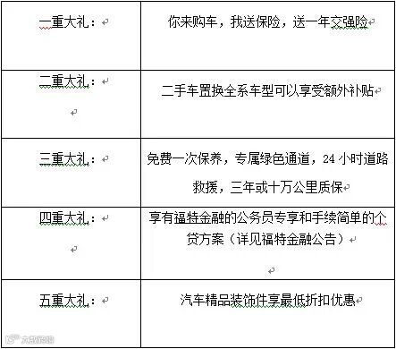 到店礼:凡到店送福特衣服100元代金券;