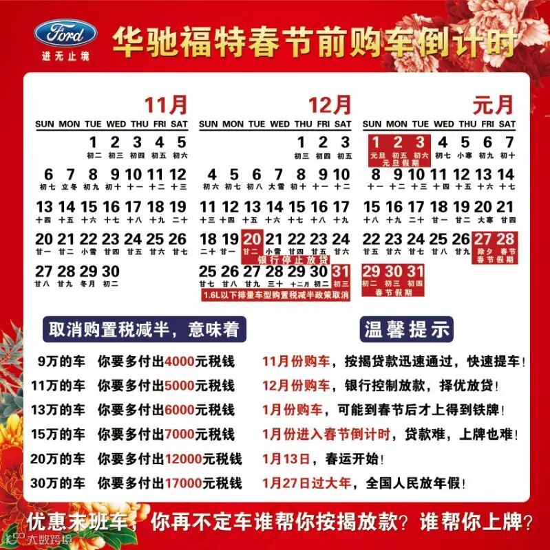 >> 考虑到距离购置税减半政策截止日期(2016年12月31日)只剩42个工作日!