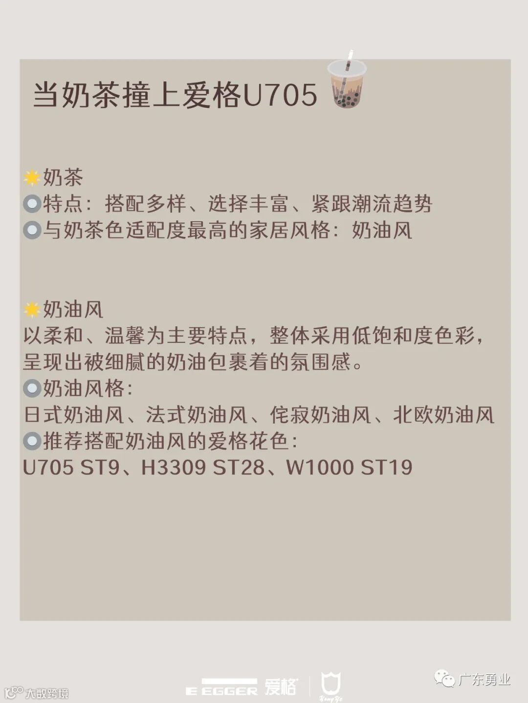 比如爱格最热门的奶茶花色:U705