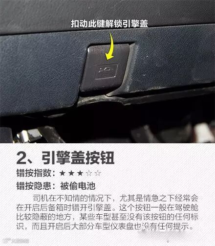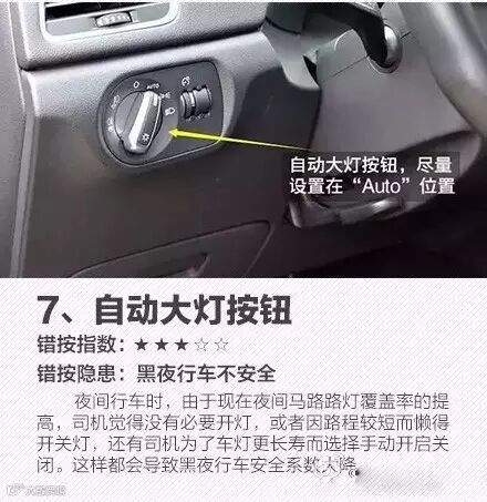 比如,错误开启远光灯可“瞬间致盲”、关闭自动驻车按钮可能导致斜坡溜车、错开引擎盖会被偷电……