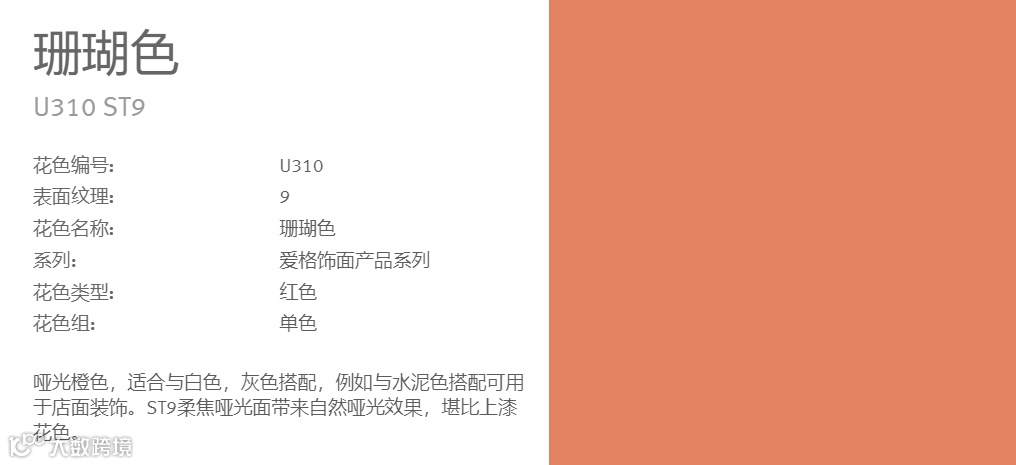 珊瑚橙,是一种来源于海底珊瑚礁群中的活力色彩。它比橘色更柔和,比粉色更活泼,甜而不腻、暖而不燥的调性使之充满了无限生机,象征着满满的期待与美好,给人一种十分舒适、愉悦的感觉。