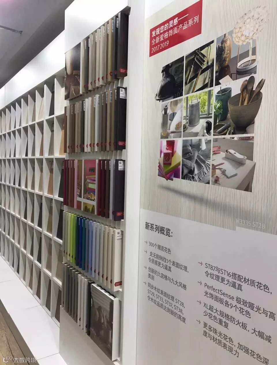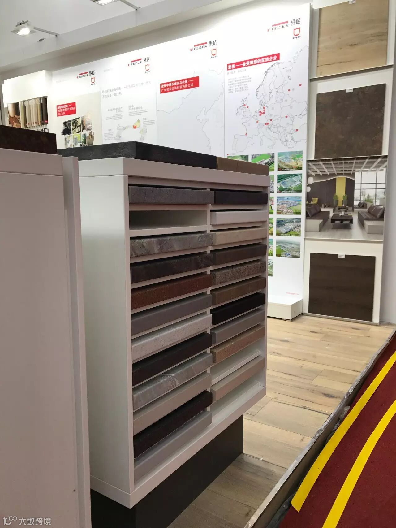 此次展会,广东勇业.爱格展厅,展示了爱格全新花色2017-2019系列,产品包括双饰面板、防火板、台面板及封边带。