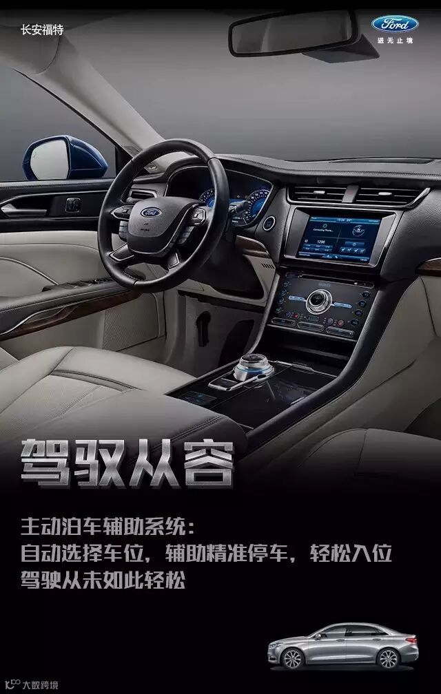 福特金牛座配备主动泊车辅助系统,可实现平行泊车和垂直泊车两种泊车方式,自动选择车位,辅助精准停车,轻松入位,让驾驶变得更加方便,商务生活更添从容。