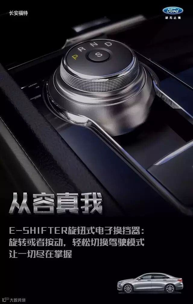 福特金牛座智能领先的E-Shifter旋钮式电子换挡器,只需旋转或按动,就可轻松切换各种驾驶模式,实现驾控升级。旋指间掌控全局,轻松驾驭征途。