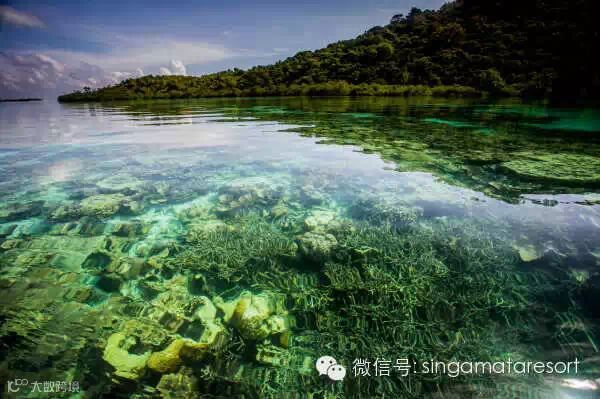 小船行驶到两座青山之间,当山的倒影,慢慢的覆盖了水面,遮蔽了天上阳光和白云带来的反射光线后,神奇的景象显现出来,小船四周是清澈见底的海水,以及丰富的水下生物,更是的珊瑚,水草,甚至于海星,鱼类,异常的丰富,简直就是一个仙境。很多人都被九寨的碧水所沉醉,但这里真的能甩开九寨好几条街呀。