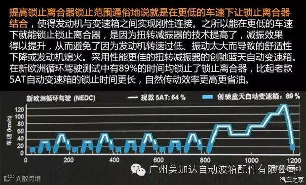 此款自动变速箱采用了多片式锁止离合器、减振性能更优秀的扭转减振器、体积更小的液力变矩器,提升了液力变矩器的锁止范围,让车辆给人以更好的直接驱动感,同时提升了变速箱的传动效率,降低了油耗。