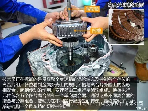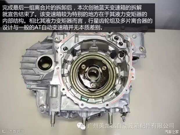 马自达创驰蓝天自动变速箱的齿轮箱内部结构与传统的自动变速箱大致相同,均采用多片离合器控制行星齿轮组进行传动;但在结构细节上和传统的自动变速箱稍有区别。下面我们对创驰蓝天自动变速箱的齿轮箱进行拆解。