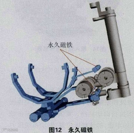 每个换挡拨叉单元上设有一个永磁铁(图12)。距离传感器可以根据永磁铁来检测换挡拨叉所处的位置,换挡拨叉位置又可用于确定接合的挡位。图12