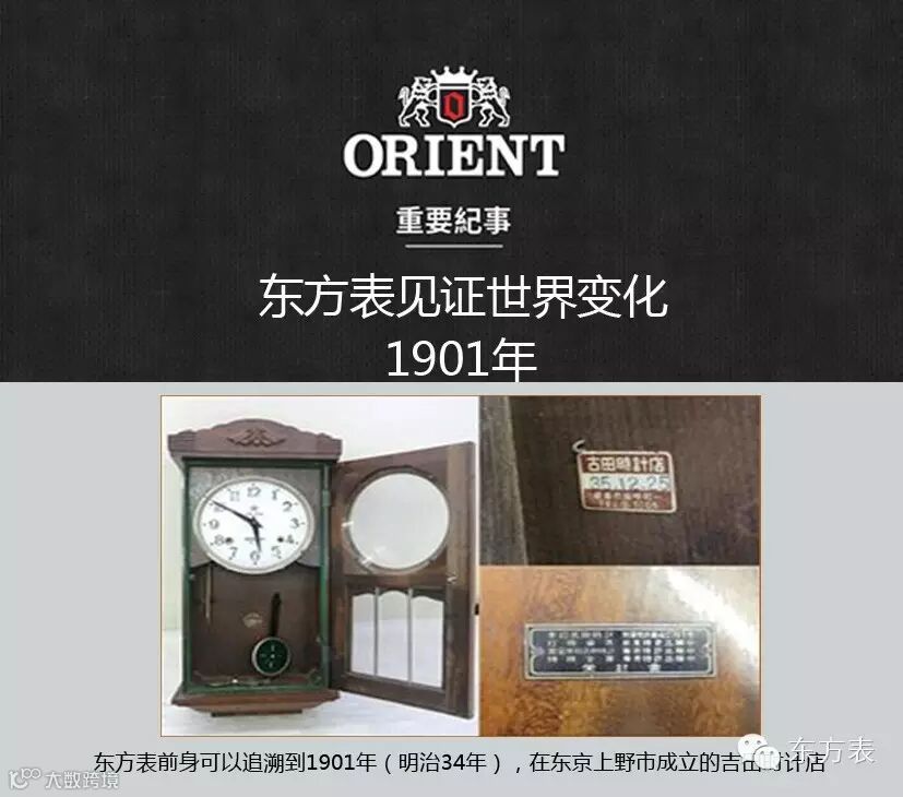东方表前身可以追溯到1901年(明治34年),在东京上野市成立的吉田时计店