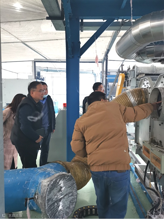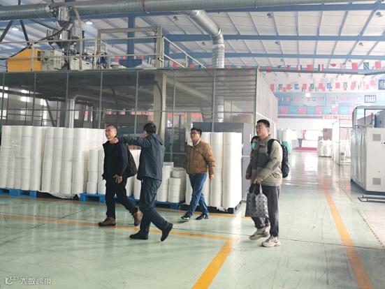 专家一行深入到生产车间,走到产品生产现场,详细了解各生产线的数据、产品性能的检测、布面的均匀程度、产品功能、产品结构等逐一与生产负责人进行了深入交流并提供了许多建设性意见。王桦教授结合其多年在熔喷领域的专业学识和生产管理经验,现场对公司产品生产过程中遇到的工艺和设备问题提出了宝贵的改进措施和方法。