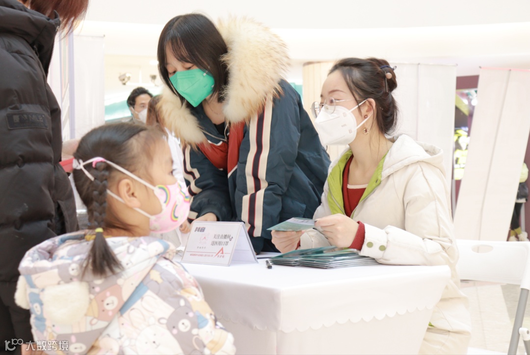 家长带着小朋友来现场咨询口罩知识