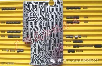 拆下阀体,分解所有滑阀和弹簧,仔细检查后终于发现问题!阀体中一个机械阀的弹簧已经断裂(图2),从维修资料中可以看出,该机械阀是油压控制调节阀,可以与(图3)正常的722.6阀体图片对比。