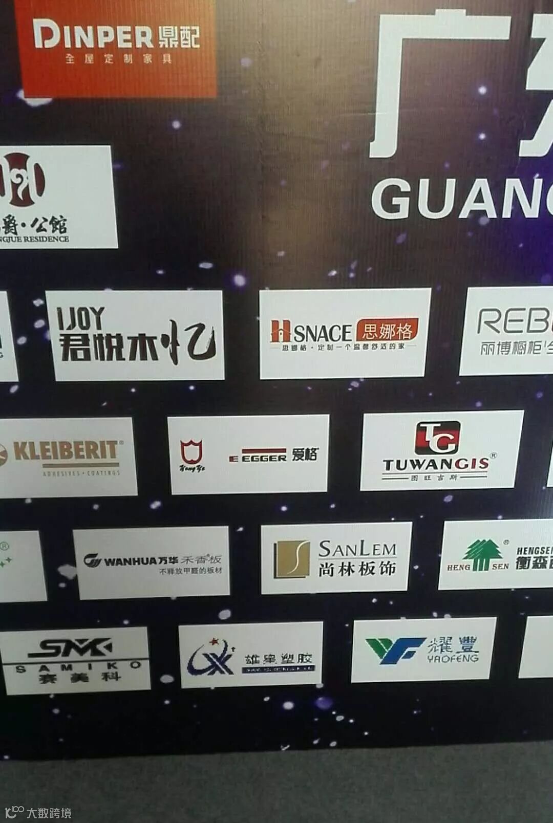 图为广东省定制家居协会会员单位墙,聚集着广东省知名的整体家居、板材、配件等供应商。
