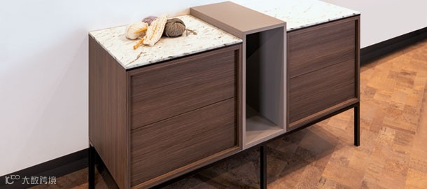 爱格花色设计师推荐搭配:F501 ST2刷质铝、F812 ST9 白色莱万托大理石,U989 ST9 黑棕色,W1200 ST9瓷白。