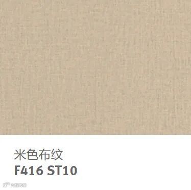 米色布纹具有相对粗糙的布纹设计,表面纹理 ST10 粗砺深压纹恰到好处地还原了布纹的粗砺感。米色调属于暖色调,加上布纹表面,运用于室内空间中,会给人非常温暖舒适的感觉。