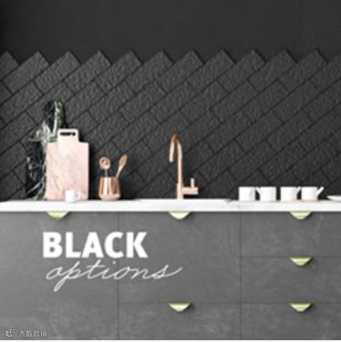 花色搭配上,这款花色非常适合与黑色系进行搭配,黑与白的经典搭配,是永不过时的潮流。上面是爱格设计师推荐的几款花色,与白色卡拉拉大理石搭配也能营造出或时尚、或优雅的空间氛围。