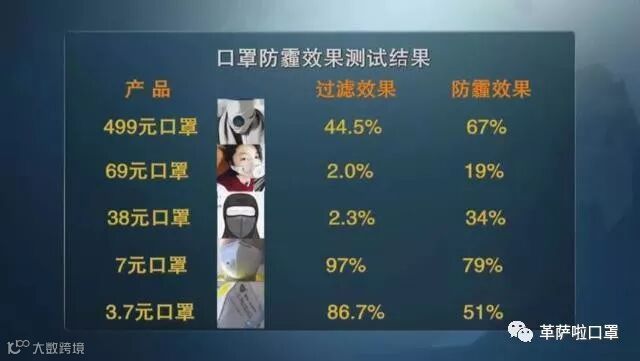 两天后,测试人员得出了这些数据,我们发现,这个明星同款口罩并不像它所宣程的那样“有效过滤率大于91%”,而是只有2.0%;这款38元产品同样数值偏低;499元的这款产品真实过滤效果是44.5%,防霾效果只有67%。到是这款价格仅为7元钱的口罩,实际测试后效果还挺不错。