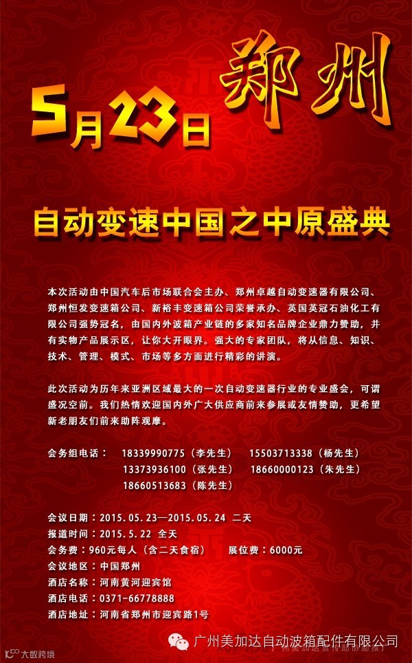 ♛5月23日 郑州自动变速箱之中原盛典大会 火热报名中♛