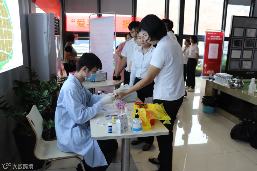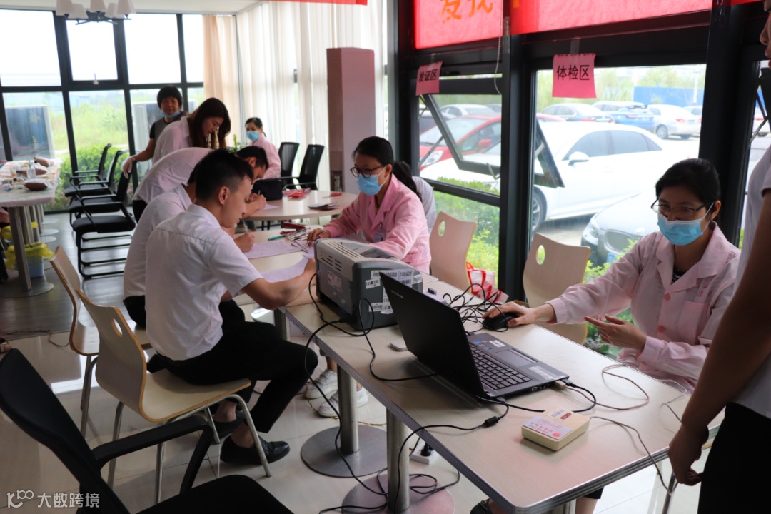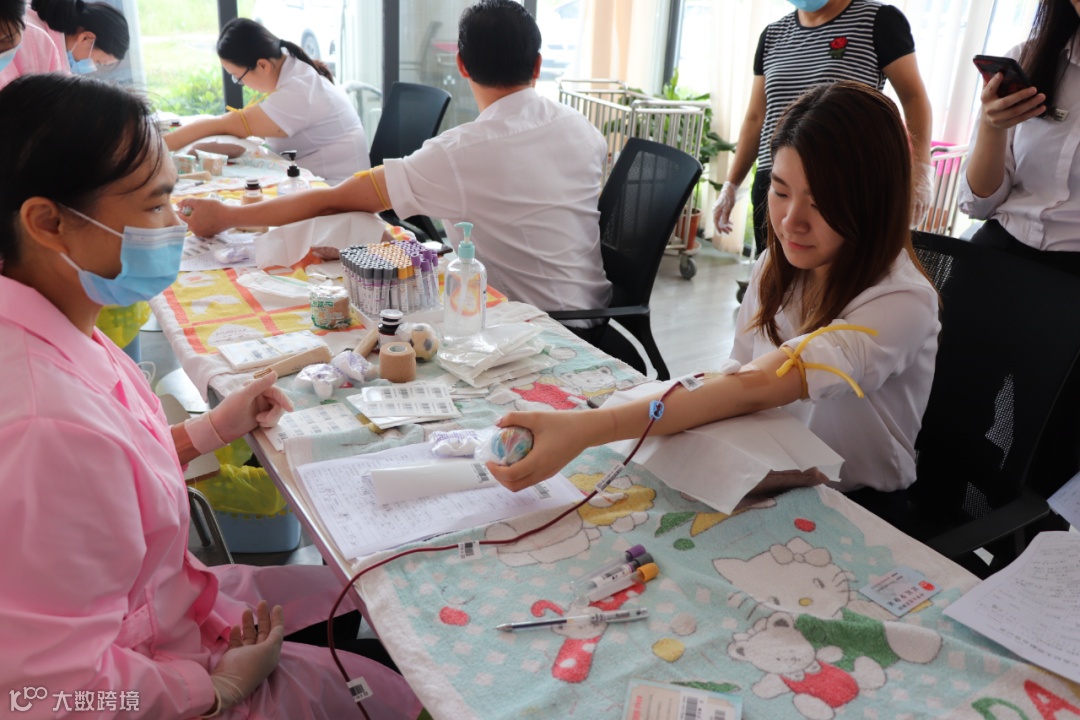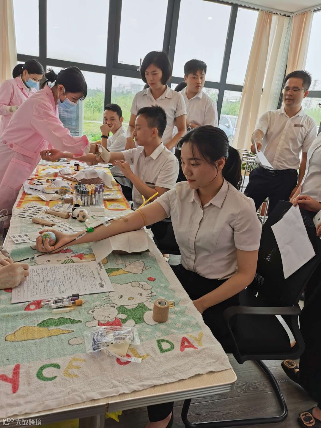 在招商中心,献血现场人头攒动,参与献血的员工们在工作人员的指引下,井然有序地进行登记填表、验血、献血,现场气氛一片暖意融融。通过血样检测的员工到献血区里进行规范献血。献血区里医护人员工作细致认真、医疗设施先进齐全。