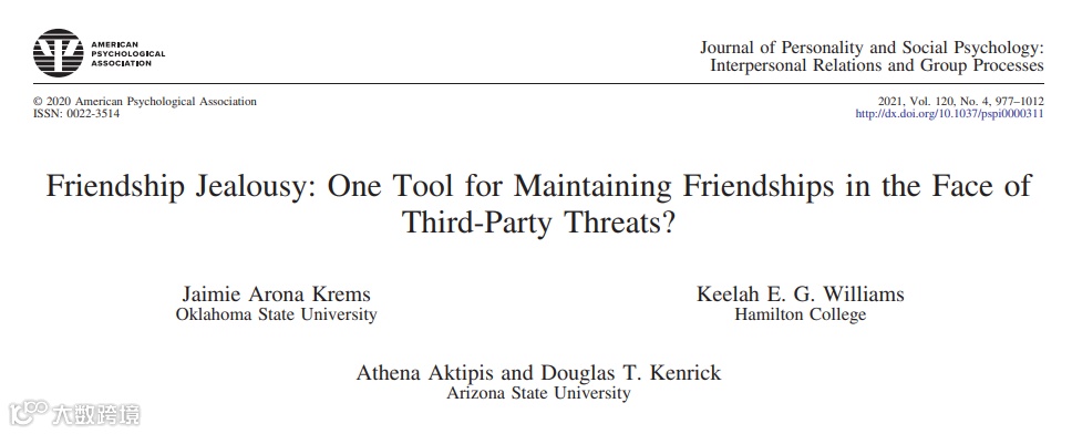 其中一个核心的结论发现:友谊嫉妒与友谊守护意图呈正相关,即当出现第三方威胁时,嫉妒感会促进友谊守护意图的产生。