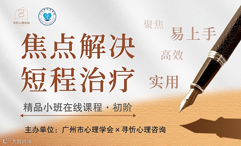现由广州市心理学会和寻忻心理咨询联合升级打造了精品小班在线课程——焦点解决短程疗法技能初级培训课程(第二期),助你全面浸泡式掌握这一实用的技能,为你的专业发展和助人事业增添强大的助力!