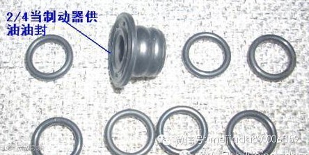 由于这款自动变速箱比较新装车时间还不长,所以一个是对该变速箱的了解还不深其次就是备件也很难买到。几经周折花费了一定的时间终于买到了变速箱所缺少的密封元件(见图2),其实给2/4档制动器供油的不是一个密封圈而是一个油封。