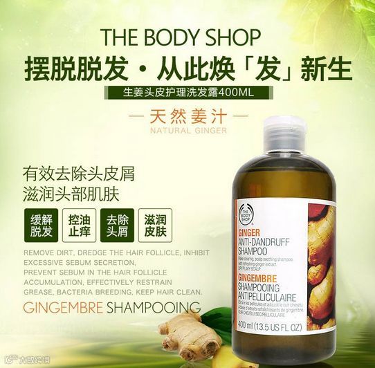 The Body Shop生姜洗发水主打成分当然是生姜啦,但这不是生发的洗发水哦,而是能彻底清除油脂的洗发水。生姜去油的功能是得到科学界的承认的,多吃姜能预防高血脂和高胆固醇。生姜成分能够有效清除发根处分泌油脂混合的污垢,避免油脂阻塞毛囊,带来清爽的洗感。