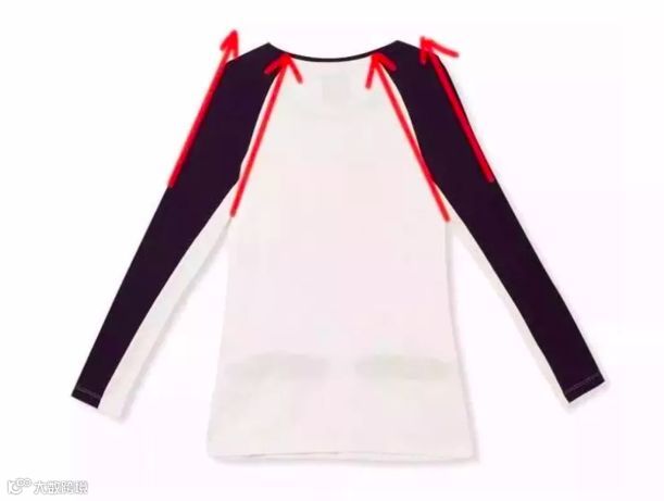 八字插肩,是指袖子从侧肩插进领口两侧,视觉上缩短肩宽,对宽肩妹纸很友好。