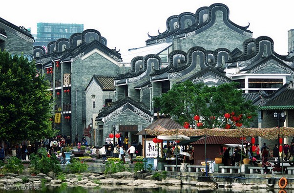 大学城内的岭南印象园,可以称得上是一个微缩版的小“岭南”。那原生的岭南文化和乡土景观,几乎原样复现了岭南民间繁荣生活场景。而河源的五指毛桃、佛山的大良磞砂,梅州的客家娘酒……几乎所有的广东特产也都能在园内买到。