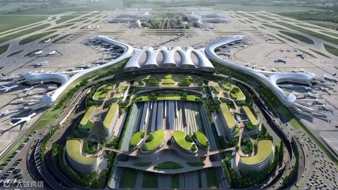 超级规模:4E级国际机场(预留4F升级空间),本期2条3600米跑道、26万㎡航站楼、94个机位,年旅客吞吐量3000万人次、货邮50万吨。