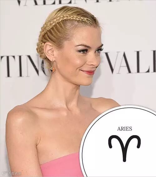 豪迈的牡羊座,以显眼的双五股辫紧密编缠在头上,双五股辫造型也有点像羊角,也十分适合积极正面的牡羊座女孩!