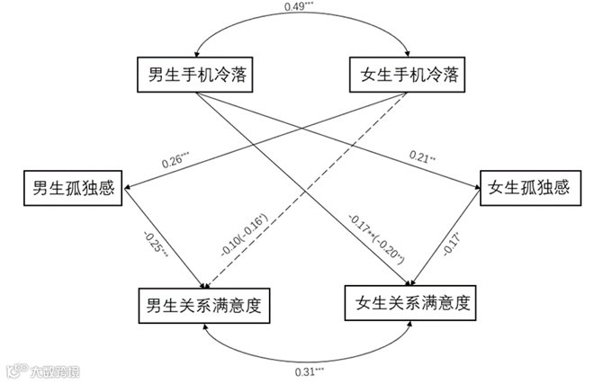 ②孤独感在伴侣手机冷落与关系满意度之间发挥中介作用