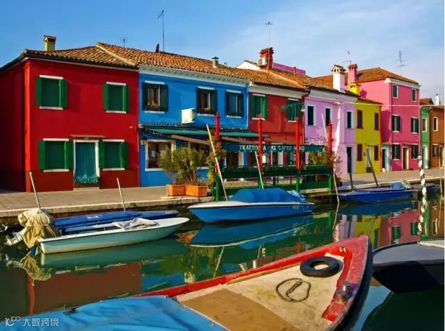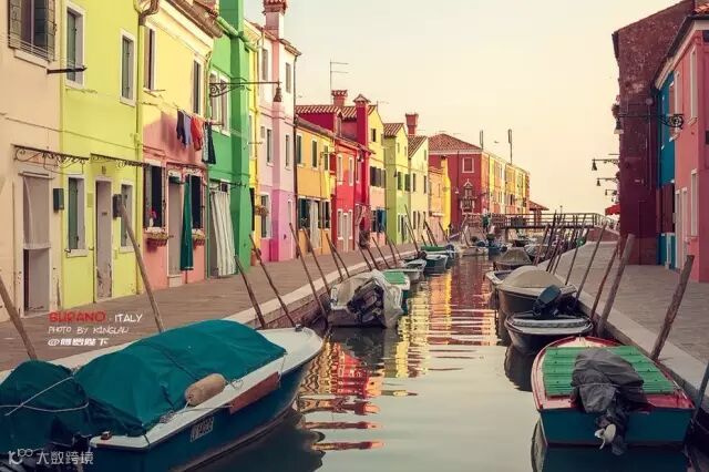 彩色岛,如同上天遗落人间的颜料盒,绽放着千变万化的色彩,她本应是世间最艳美的鲜花,却收敛着自己的美丽,平静地,静卧于威尼斯一角,甘当绿叶。