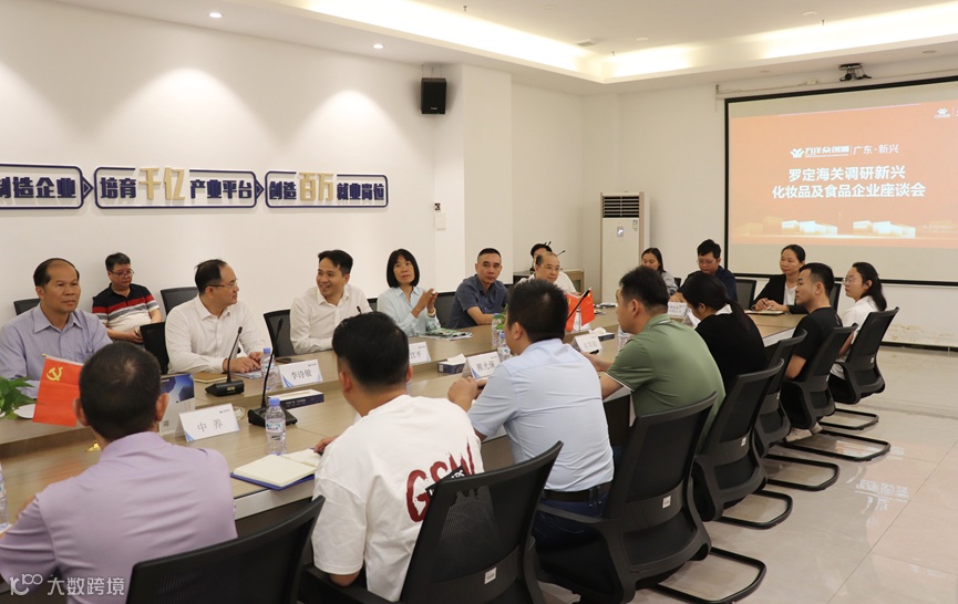 随后,在新兴万洋众创城会议室,罗定海关组织召开新兴县化妆品和食品企业代表座谈会,与壹丹医药、益孝堂、速派科技、欧佩、名草源、自然之宝、柏芝翎、贝斯特等十多家来自万洋园区的优秀企业以及温氏食品、明基水产等新兴县本土龙头企业进行了座谈交流,并宣贯海关惠企政策。