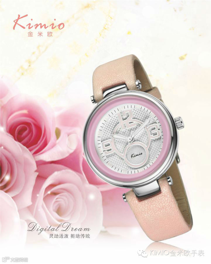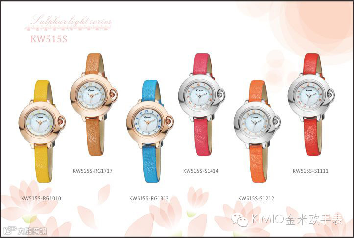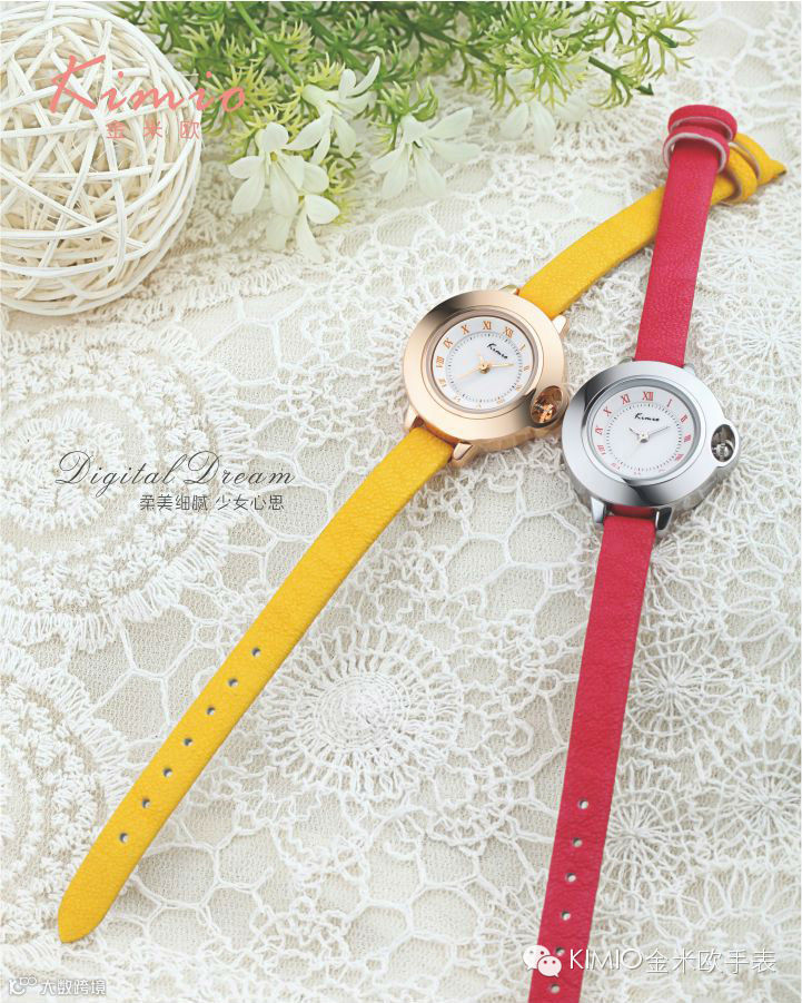 青春时尚的KIMIO金米欧溢彩系列新品亮丽上市,系列手表均采用2014年KIMIO金米欧新引进的2035机芯,还有优质的生活防水功能,让你的美丽持续不间断。更升级选材使用优质皮革制作表带,柔软舒适,时尚而富有质感。
