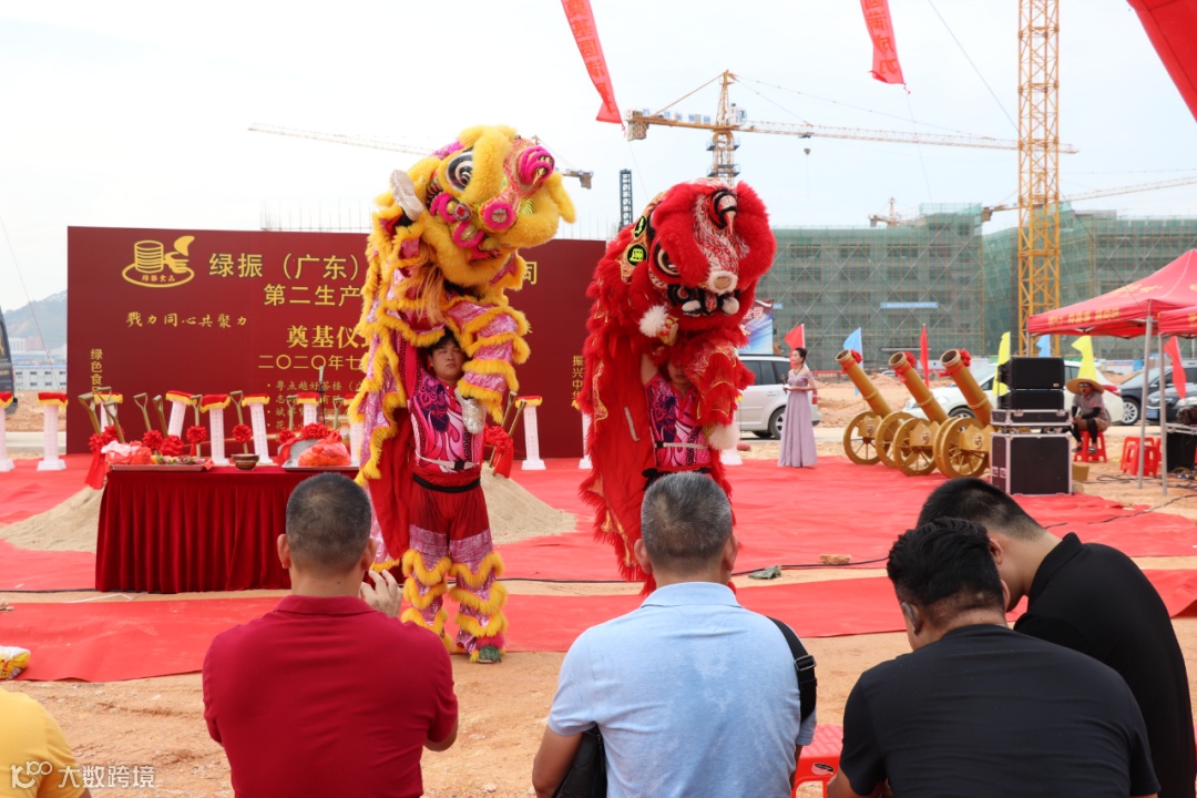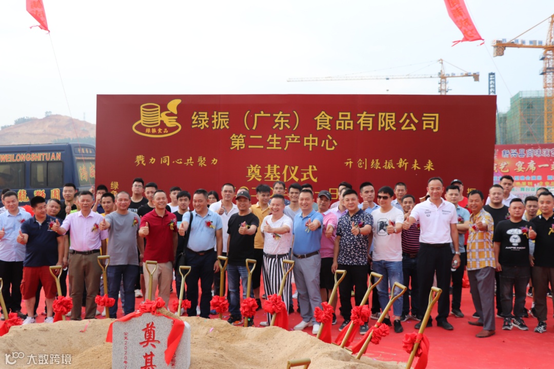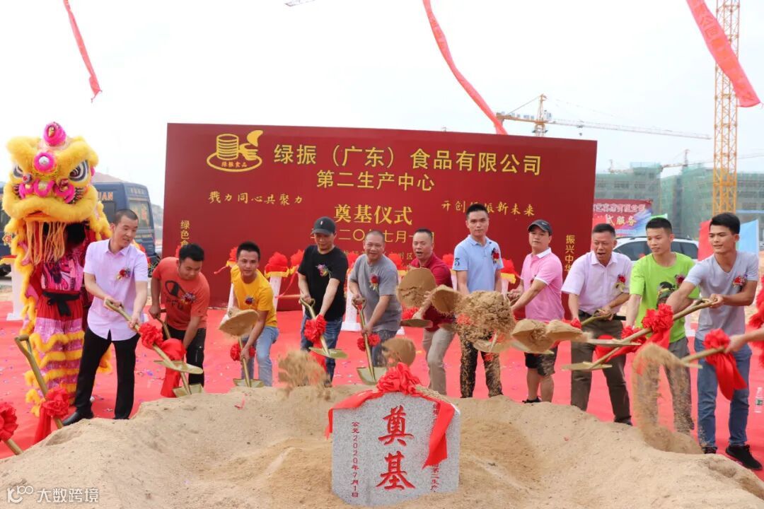 2020年7月1日下午,绿振(广东)食品有限公司组织80余人参与奠基仪式,其中顶一集团董事长梁鉴志先生、长乐食品公司董事长梁伟坚先生、森农食品公司董事长杨活星先生、至善食品公司董事长赵木荣先生、禾利食品公司董事长李进强先生出席本次奠基仪式,场面盛大、热闹非凡。