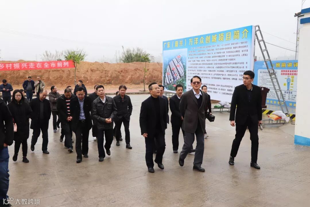 2月26日上午,由云浮市委常委、常务副市长胡海运,市政府副秘书长陈新仪等市、县有关单位领导组成的全市重点项目推进工作小组赴广东(新兴)万洋众创城项目地考察指导工作。广东新兴万洋众创城总经理游源对工作小组的到来表示热烈的欢迎,并向工作小组汇报了新兴万洋众创城项目2018年的建设情况及2019年推进规划。